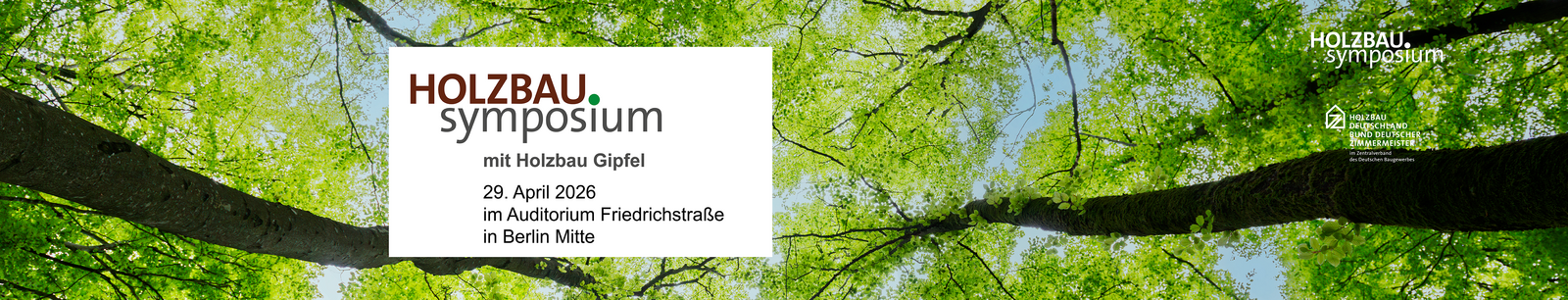 Nach der gelungenen Auftaktveranstaltung im März vergangenen Jahres findet am Mittwoch, 29. April 2026 das 2. Internationale Holzbau Symposium mit dem Gipfel Nachhaltiges Bauen und Wohnen in Berlin statt. Beim Gipfel Nachhaltiges Bauen und Wohnen referieren und diskutieren hochkarätige Vertreter:innen aus Politik, Wirtschaft und Wissenschaft über den Wirtschaftsfaktor Bauen mit Holz für den Klimaschutz. Ihre Teilnahme zugesagt haben unter anderem bereits Bundesbauministerin Verena Hubertz MdB, die bayerische Landwirtschaftsministerin Michaela Kaniber MdL, der Berliner Bausenator und Vorsitzende der Bauministerkonferenz Christian Gaebler MdA sowie der Klimafolgenforscher Prof. Dr. Hans Joachim Schellnhuber.