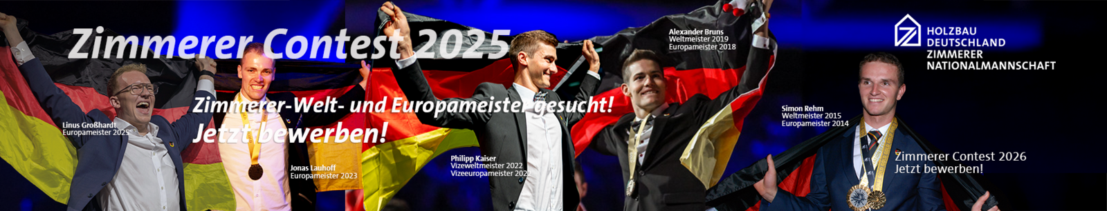 Vom 19. bis 23. Oktober 2026 findet der nächste Zimmerer Contest für talentierte Zimmerinnen und Zimmerer statt. Ziel ist es, neue Teammitglieder für die Zimmerer-Nationalmannschaft zu gewinnen. Bewerben können sich alle Zimmerinnen und Zimmerer, die eine abgeschlossene Gesellenprüfung haben und am 1. Januar 2006 oder danach geboren sind.